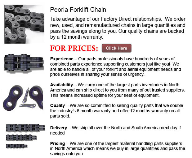 Lift Truck Chain Peoria - The city of Peoria, Illinois is located along the Illinois River and has an estimated population of about 115,007. The Peoria Metropolitan Statistical Area (population 372,487) is the third-most populated metro area in the state of Illinois outside of the Chicago Metropolitan Area.