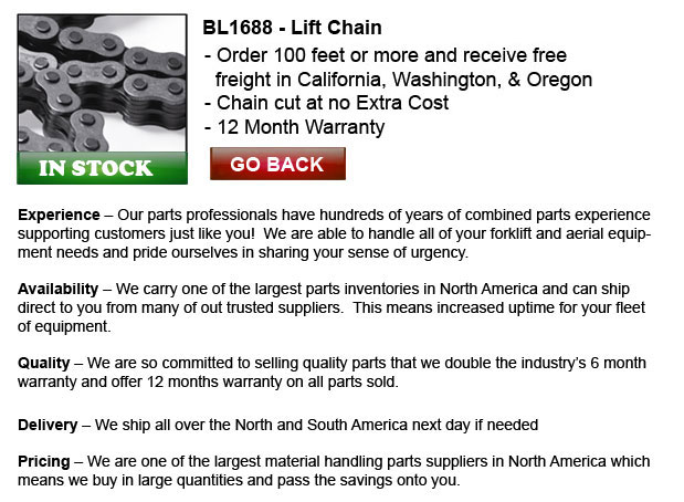 TOLL FREE: 1-888-633-0283 www.forkliftmastchain.com Email Us Lift Parts Express prides itself on the diversity and volume of parts we carry. Regardless of the model of lift truck you run, we have the parts you need. The cost savings we can offer will... About Us | ||