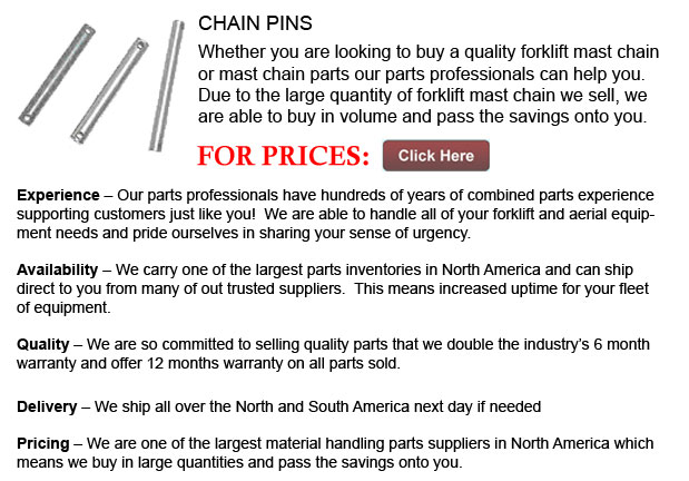 TOLL FREE: 1-888-633-0283 www.forkliftmastchain.com Email Us Lift Parts Express prides itself on the diversity and volume of parts we carry. Regardless of the model of lift truck you run, we have the parts you need. The cost savings we can offer will... About Us | ||
